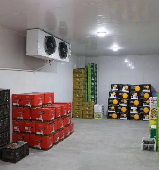 2、1號水果恒溫庫和2號水果恒溫庫制冷系統(tǒng)分別配備的是一套8HP和5HP美國艾默生谷輪中溫渦旋壓縮機組(含冷凝器、電磁閥、壓力控制器等),該機組制冷量大,性價比高,安全可靠。兩間冷庫內各配備了一套浙江凱迪系列高效強風型冷風機,該風機運行穩(wěn)定噪音小,送風距離遠,使得庫內降溫速度快,極大增強了化霜效果,增加快速對流循環(huán),從而達到每個角落的溫度均勻性。